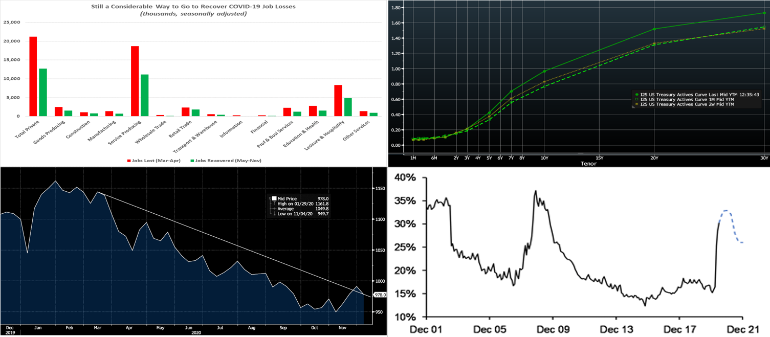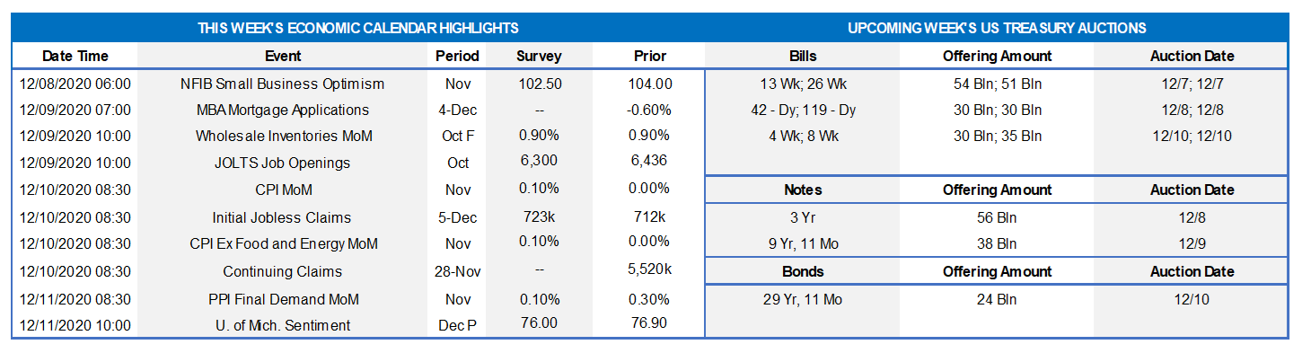 On the UST supply front, this week brings 3/10/30-year auctions. Corporate issuance should add yet again to its historic record annual pace albeit slower as the holidays approach. Attention will remain on the prospect of further relief legislation and certainly also on COVID-19 developments which have been worsening further.