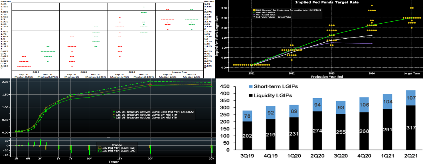 Source: Fitch; JP Morgan. As seen here in this chart of local government investment pools (“LGIP”, LHS, $bn), liquidity portfolios of states and local governments have increased meaningfully over the past two years, as they were beneficiaries of both the CARES and ARP fiscal stimulus packages. Given that states and local governments are expected to receive the second portion of the ARP fiscal payments in 2022 and that tax receipts have thus far outpaced spending, there could be continued liquidity accumulation among states and local governments next year. For our members experiencing local government deposits but not familiar or not using our Municipal Letters of Credit product, we encourage you to contact us and/or visit https://www.fhlbny.com/business-lines/credit-products/letters-of-credit/#mulocs.