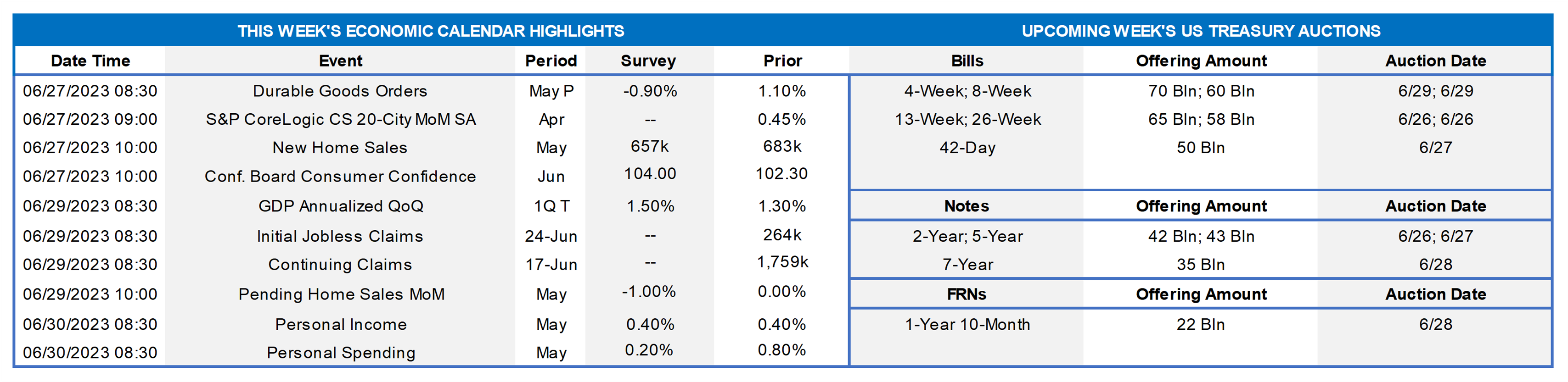 - June 29 Atlanta Fed President Bostic to speak about the US economic outlook with the Irish Association of Investment Managers.