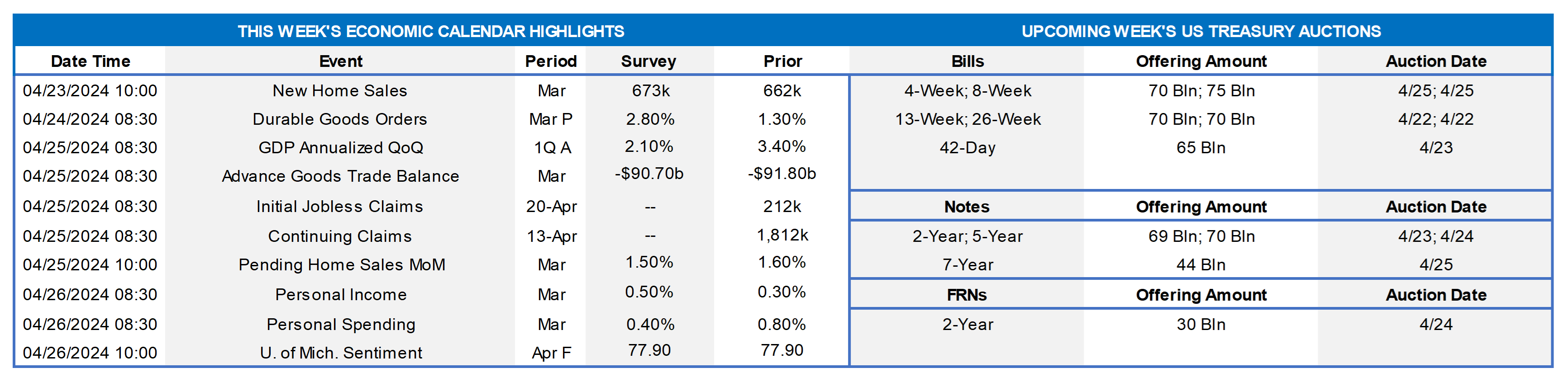 - Given the Fed blackout, market focus will steer towards the slate of economic data releases.