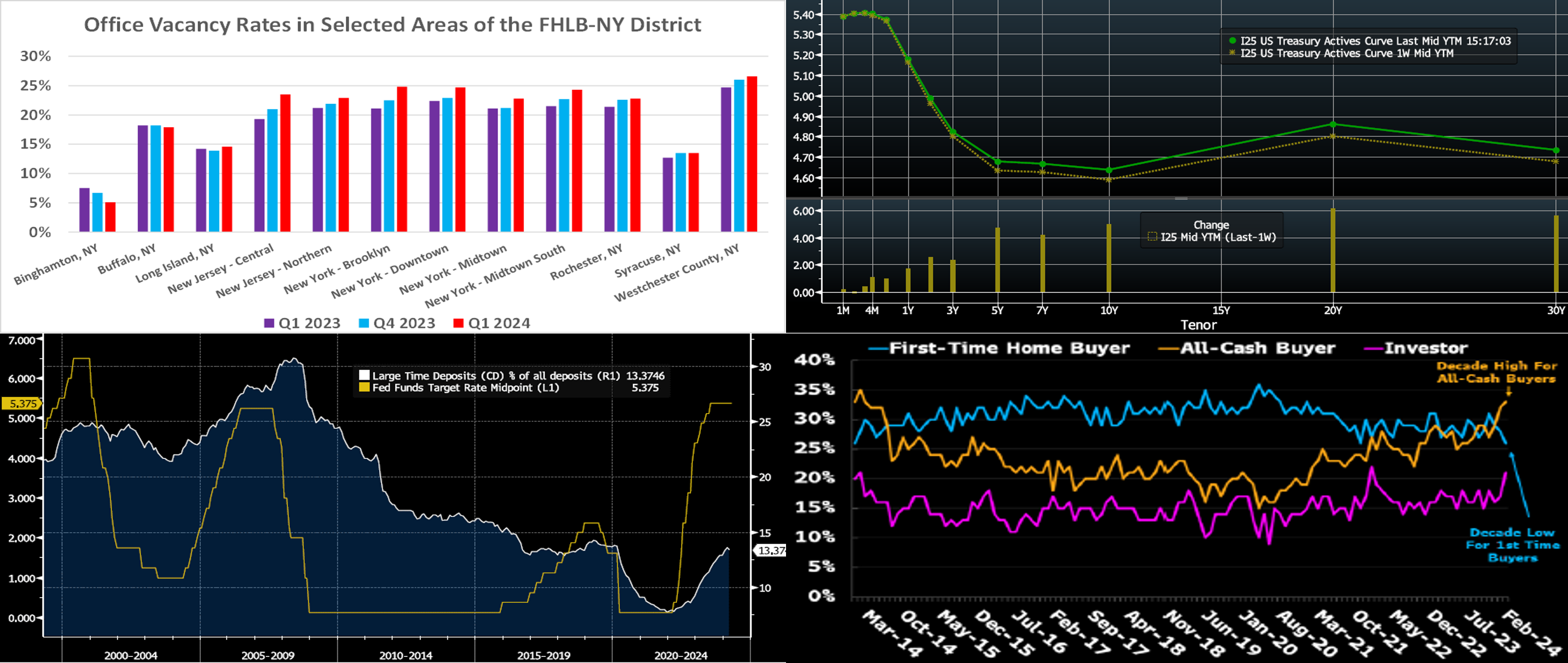 Source: Bloomberg Intelligence; National Association of Realtors. As seen here, first-time homebuyers now comprise a decade low as a percentage of overall buyers. Limited starter homes for sale and low affordability, owing to higher prices and mortgage rates, have been a factor. Meanwhile, cash-buyers, a large share of whom are investors, represent a decade high as a percentage of total purchases. In some respects, first-timers (and others) are being squeezed out by cash-buyers. Meanwhile, the need for supply is widely cited by housing affordability experts as vital to address affordability challenges. In these areas, we encourage members to become familiar with and participate in the FHLBNY’s Affordable Housing and Homebuyer Dream Programs; for further information, please visit https://www.fhlbny.com/community/housing-programs/. Note that the 2024 AHP General Fund Round opens this Monday, April 22, with a total of $70.8mn in available grant funds.