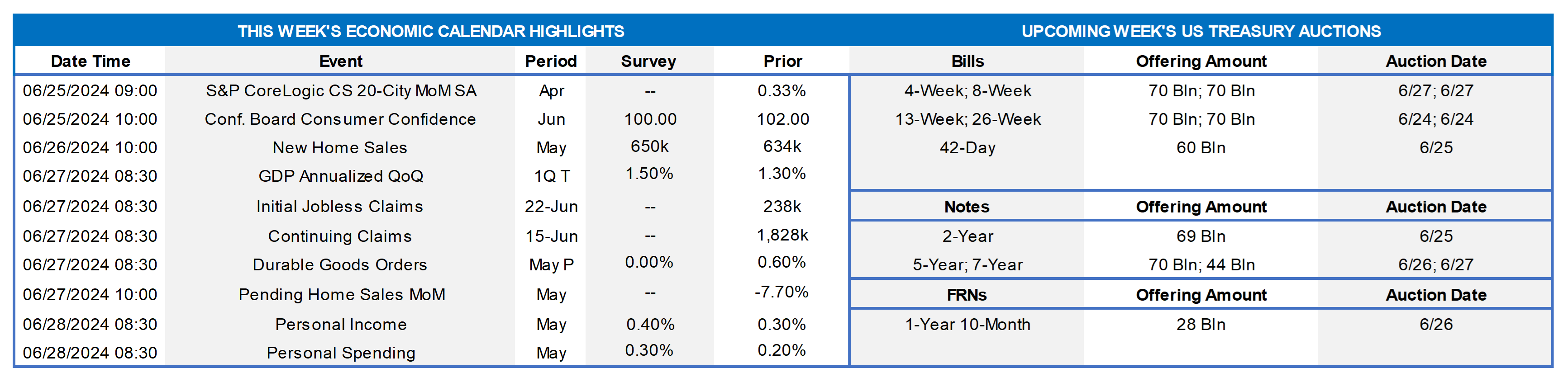 - June 24 San Francisco Fed President Daly to give remarks on monetary policy and the economy, followed by a Q&A.