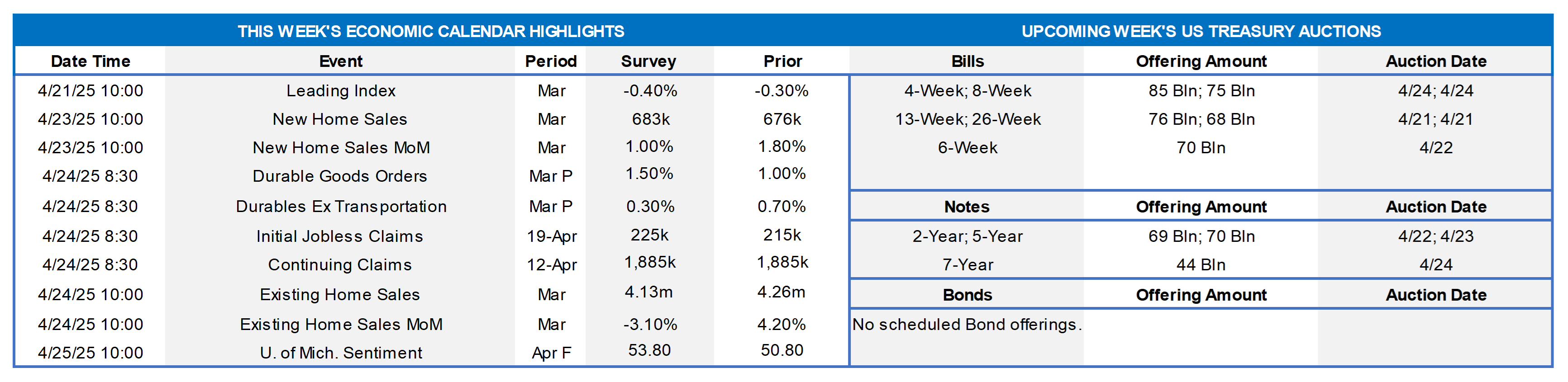 - On the UST term supply front, the upcoming week serves 2/5/7-year auctions. Note that UST auctions usually occur at 1pm and can occasionally spur volatility around that time. Please contact the Member Services Desk for further information on market dynamics, rate levels, or products.