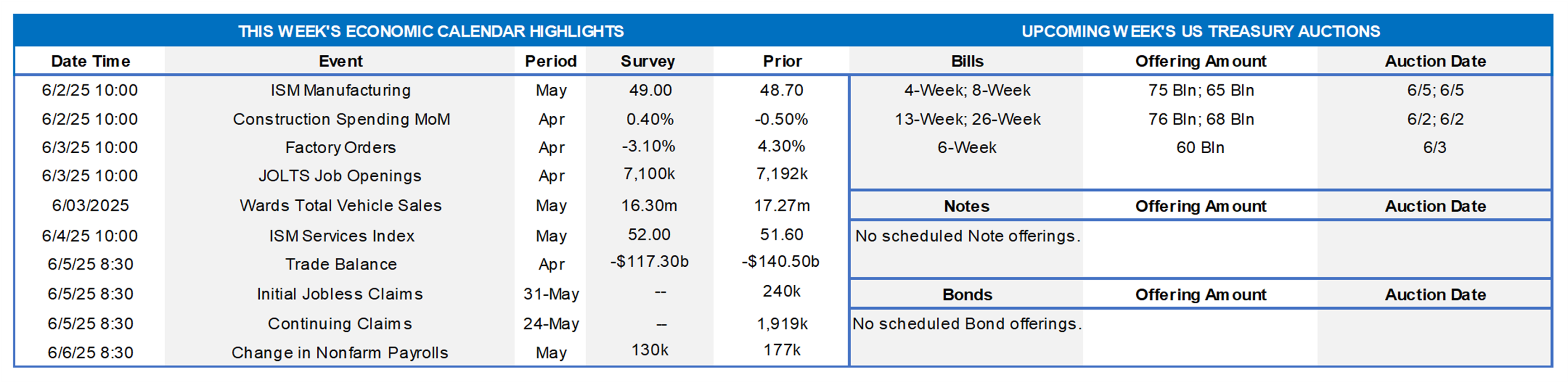 Employment Situation Report: Labor market conditions probably remained healthy as Q2 progressed. Non-agricultural establishments likely added 190K net new positions in May, marginally eclipsing the 177K job gain recorded in April. Weekly soundings on those receiving regular state unemployment insurance benefits suggest that the civilian jobless rate remained at 4.2% for a third straight month, leaving the Sahm-Rule recession gauge at .27%, still shy of the .5% critical value consistent with previous business-cycle turning points. With an extended five-week interval between BLS’s canvassing period, an upside surprise on average hourly earnings compared to the Street’s median .3% projection may also be in store.